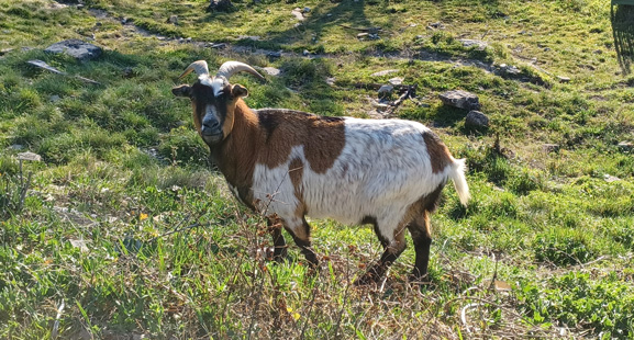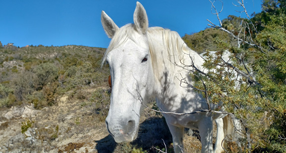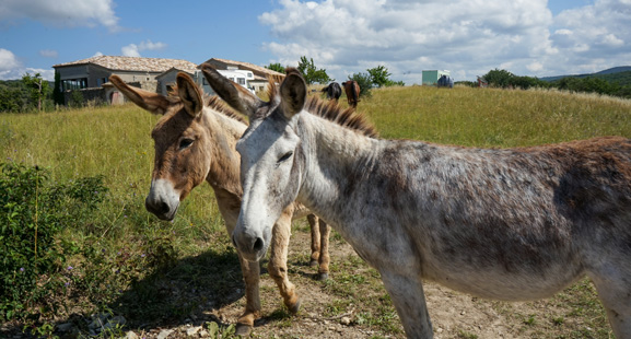 Pour l’entretien des 40 hectares de garrigue, nos tondeuses non bruyantes, non polluantes et toutes mignonnes : Les chèvres, les ânes et les chevaux !