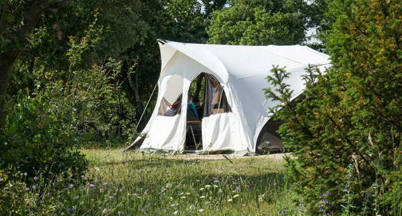 Nouveauté 2017 : Un hangar en bois dans lequel nous proposons le gardiennage de caravane. Celui-ci est recouvert de panneaux photovoltaïques qui vont produire 1/3 de le consommation électrique de notre camping ardéchois.