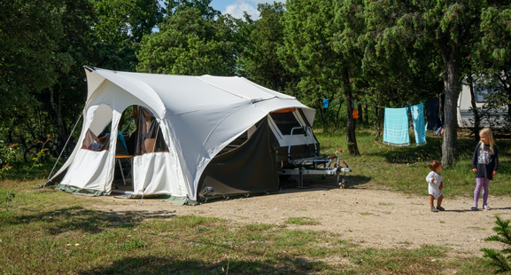 Maximaal comfort met moderne, verwarmde sanitaire installaties en recente, luxueuse mobile-homes met overdekt terras.